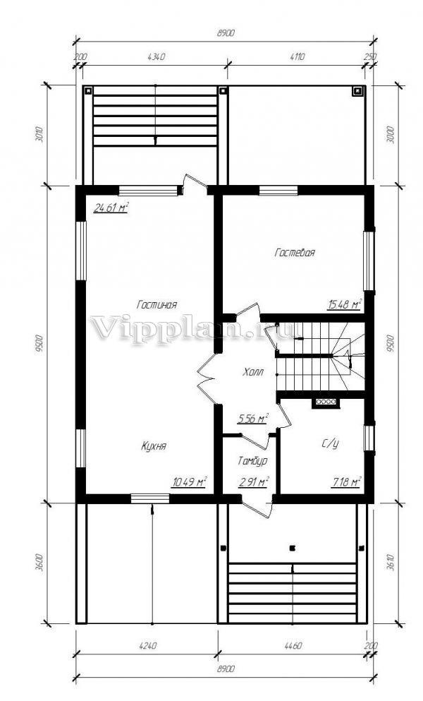 | Размеры дома: | 9.5м×8.9м |