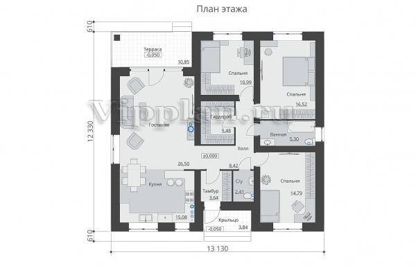 | Размеры дома: | 12.33м×13.13м |